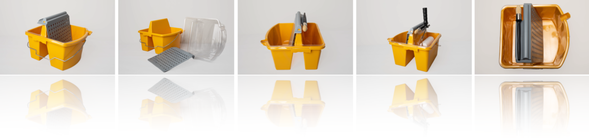 Paintix©, a été développé pour les peintres. Mais sans sa grille, il peut avoir d’autres fonction : par exemple pour faire un peu d’enduit pour reboucher une fissure (peintres et autres artisans), enduit à Placo, ou encore pour les jardiniers : du terreau dans le bac à peinture, des outils dans l’autre bac, pour le ménage, pour les laveurs de vitres : l’eau dans le bac peinture, chiffons, grattoir à vitre, etc… dans le bac outils…